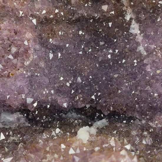 🍃 This impressive amethyst geode is a true statement piece, weighing in at a spectacular 15.1kg. Filled with the most eye-catching purple druzy, this Brazilian cathedral sparkles from every angle, drawing your eyes straight to the heart of the crystal. This incredible geode is supported by a solid concrete backing to provide extra stability, making it ideal as a focal point for any room. Searching for its new home, this would be a striking addition to any collection and is perfect for anyone who loves unique, natural home decor. 🍃