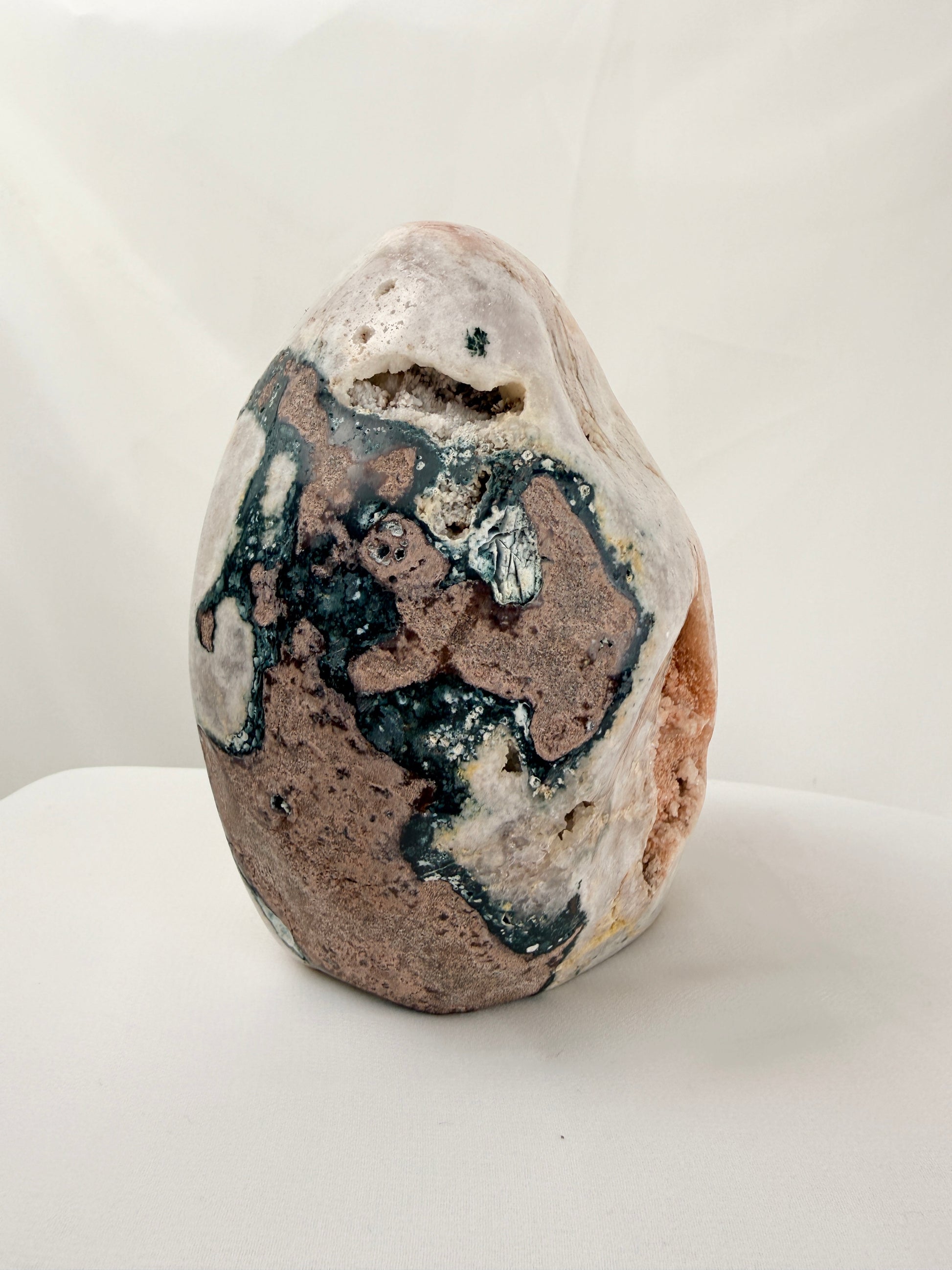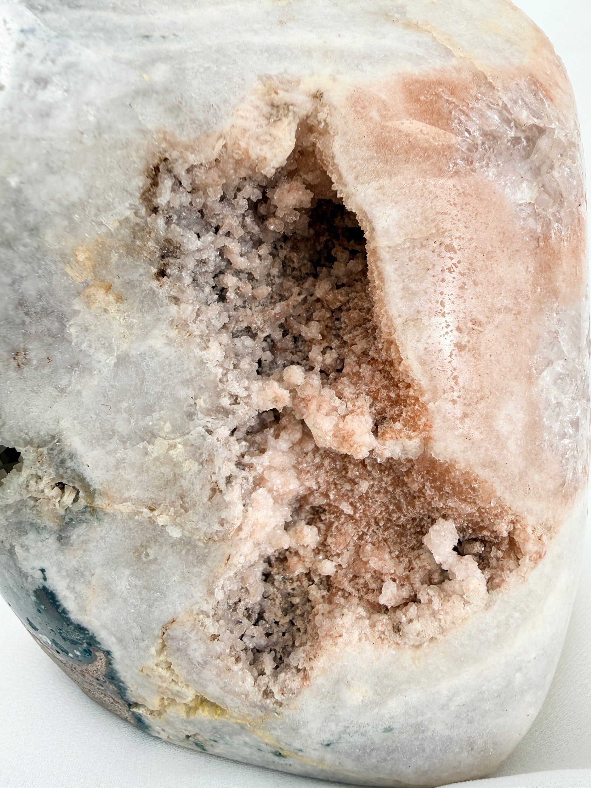 🍃 This dreamy pink amethyst is a true statement piece with a deep sparkling druzy pocket and warm honey tones throughout the crystal. The outside of the crystal has been polished to show the angelic blush-lilac shading, and its natural texture and beautiful earthy markings make it feel truly one-of-a-kind. Perfect as a shelf centrepiece for anyone who loves gentle, calming crystal energy. 🍃